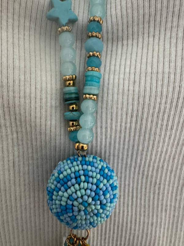 Unser Kommentar zu "Kette Halskette Boho Kette Charms NEU türkis knallig Kugel Quaste Bommel"
