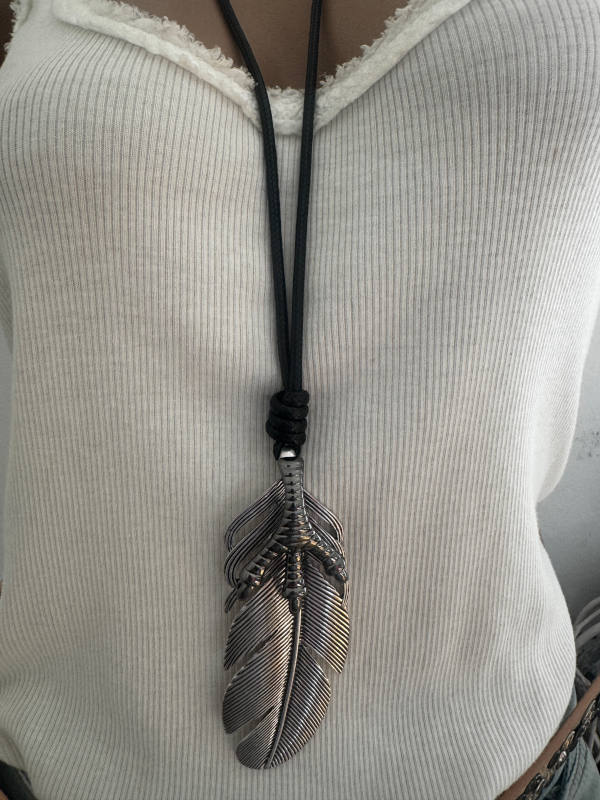Unser Kommentar zu "lange Halskette Kette FEDER Anhänger silber/schwarz Schmuck Kette"
