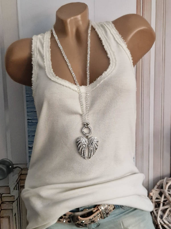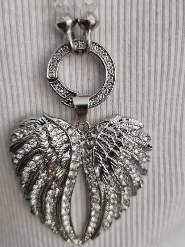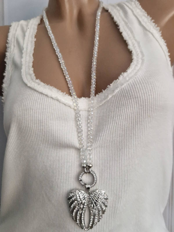 Unser Kommentar zu "VARIO Halskette lang transparente Kristallperlen Kette mit Strass Glitzer "FLÜGEL" Anhänger Neu"