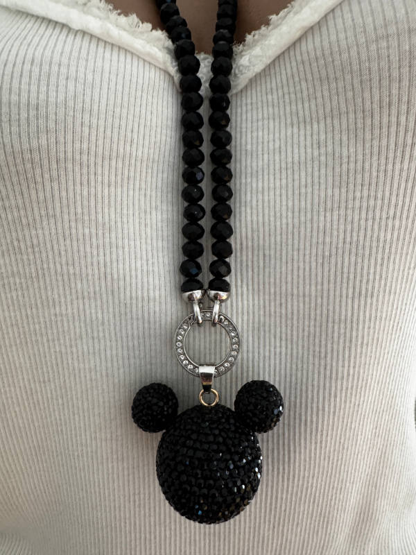 lange schwarze Kristallperlenkette mit abnehmbarem schwarzem 3D MOUSE KOPF Strass... mehr