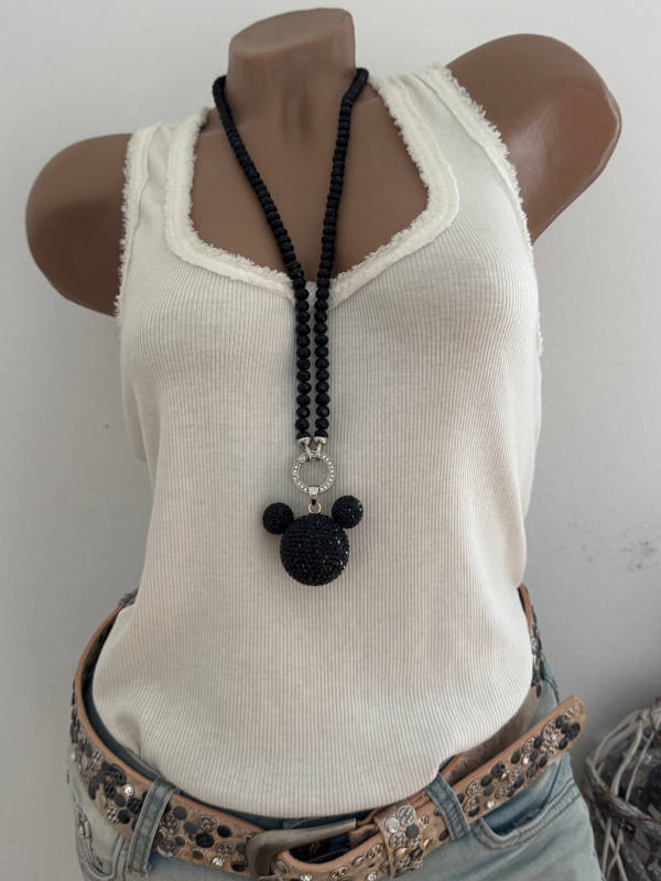 Unser Kommentar zu "VARIO Halskette lang schwarze Kristallperlen Kette mit Strass Glitzer 3D "MOUSE KOPF " Anhänger Neu"
