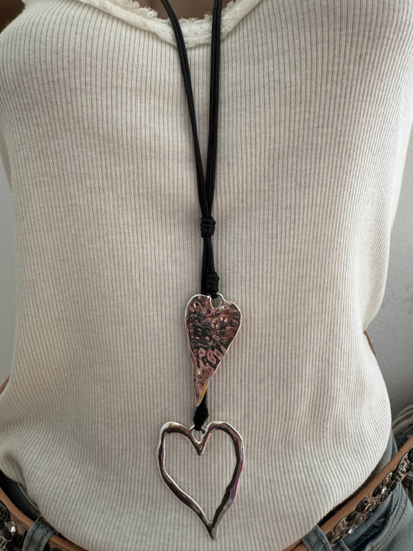 Unser Kommentar zu "lange Halskette Kette ZWEI HERZEN Anhänger silber/schwarz Schmuck Kette"