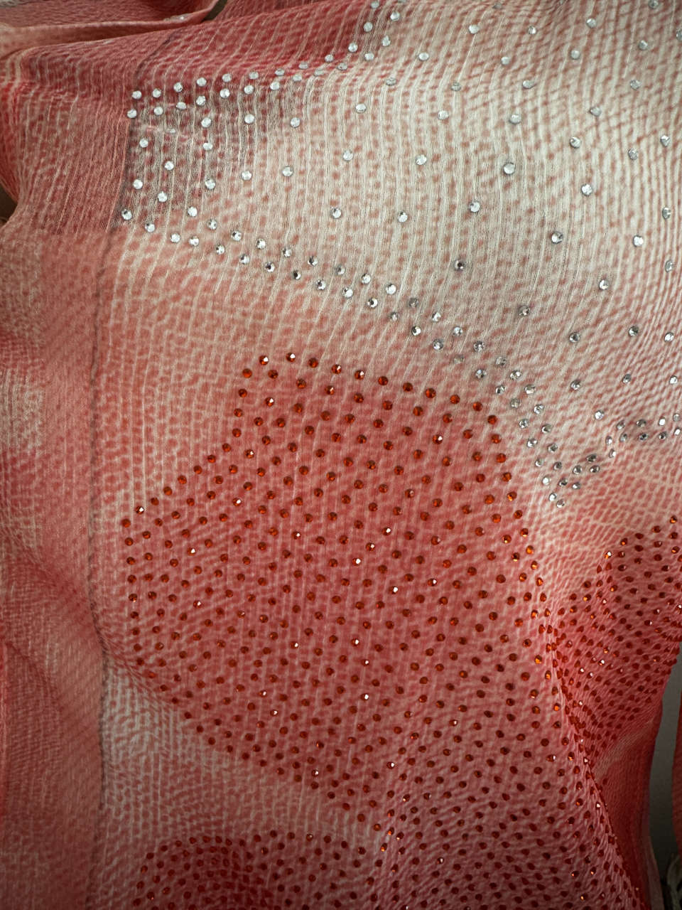 Bluse Missy M 38 Langarm lachs Floral gemustert Neue Kollektion Glitzer Nieten