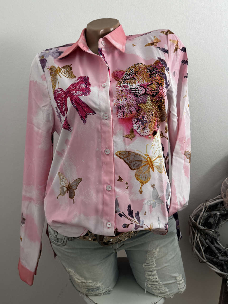 Unser Kommentar zu "MISSY M 38 Bluse Hemdbluse rosa Tiger Schleifen Schmetterlinge Neu Glitzer Steinchen"