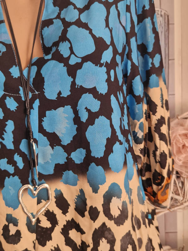 Unser Kommentar zu "36-40 V-Neck Tunika Bluse Made in Italy blau schwarz bunt Leo Turn up Ärmel NEU"