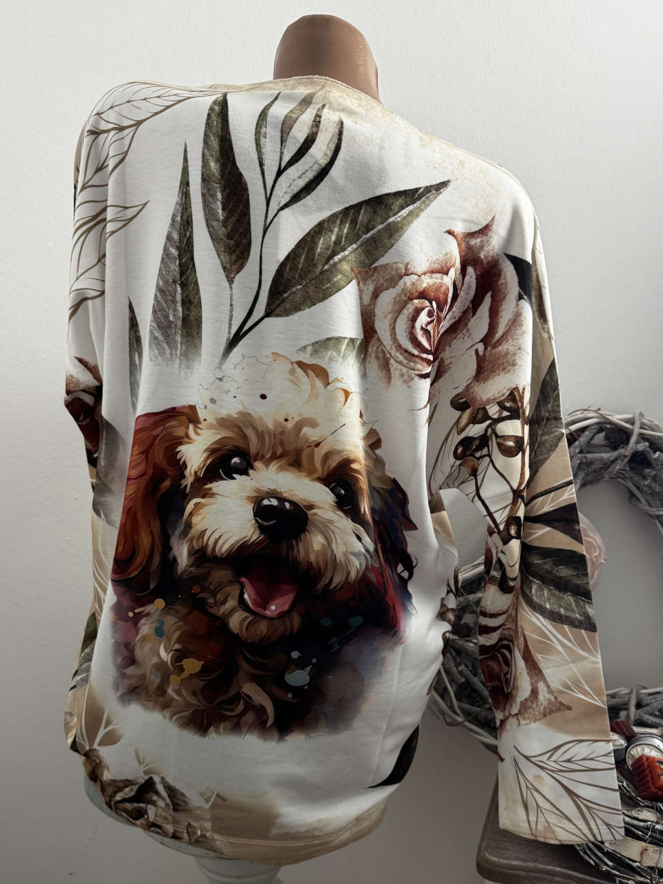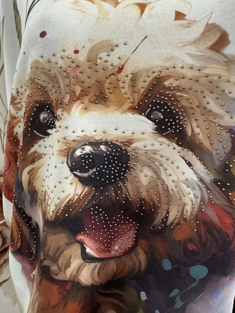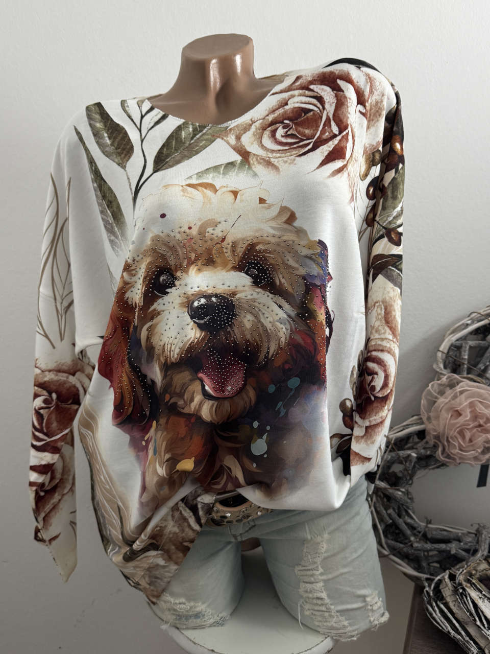 Longsleeve Tunika Glitzer Steinchen 40-44 Terrier Motiv Made in Italy