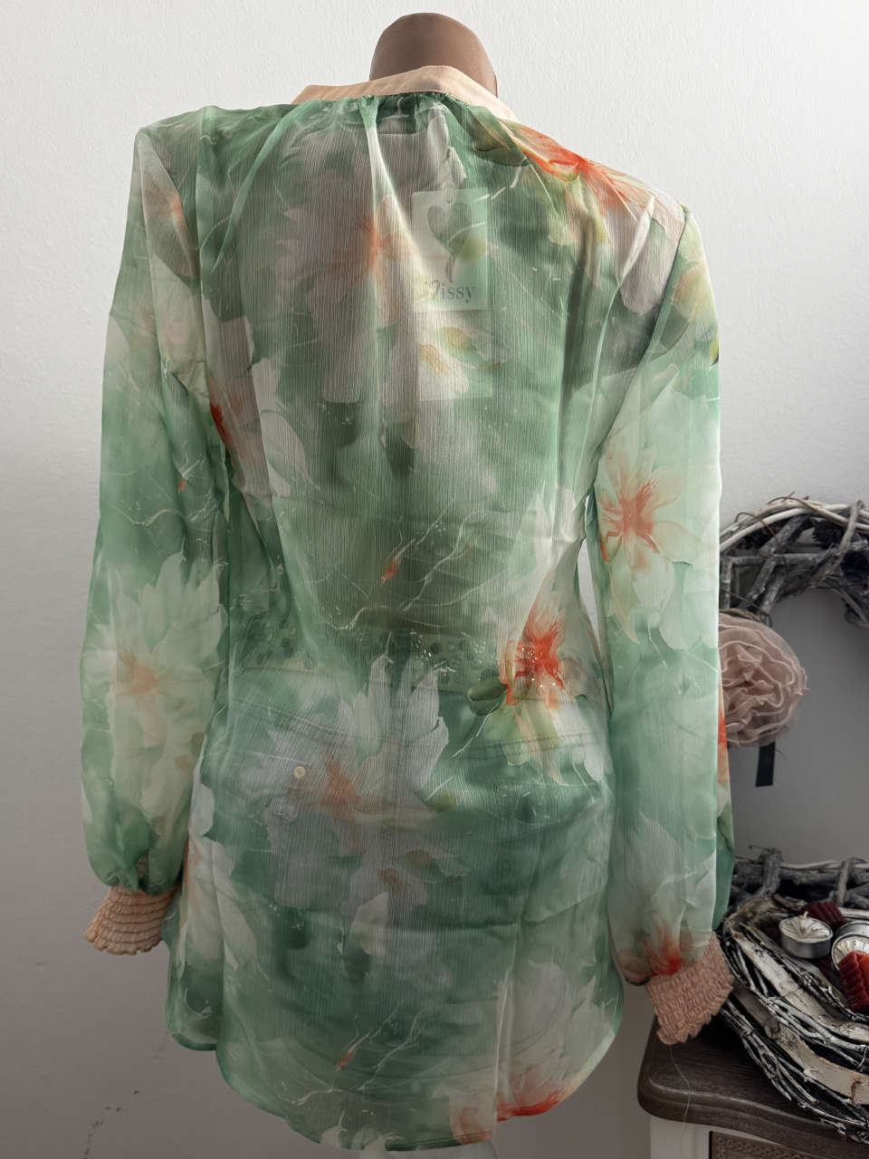 MISSY Tunika Neu L 40 Bluse V-Neck mint peach Langarmbluse Neue Kollektion