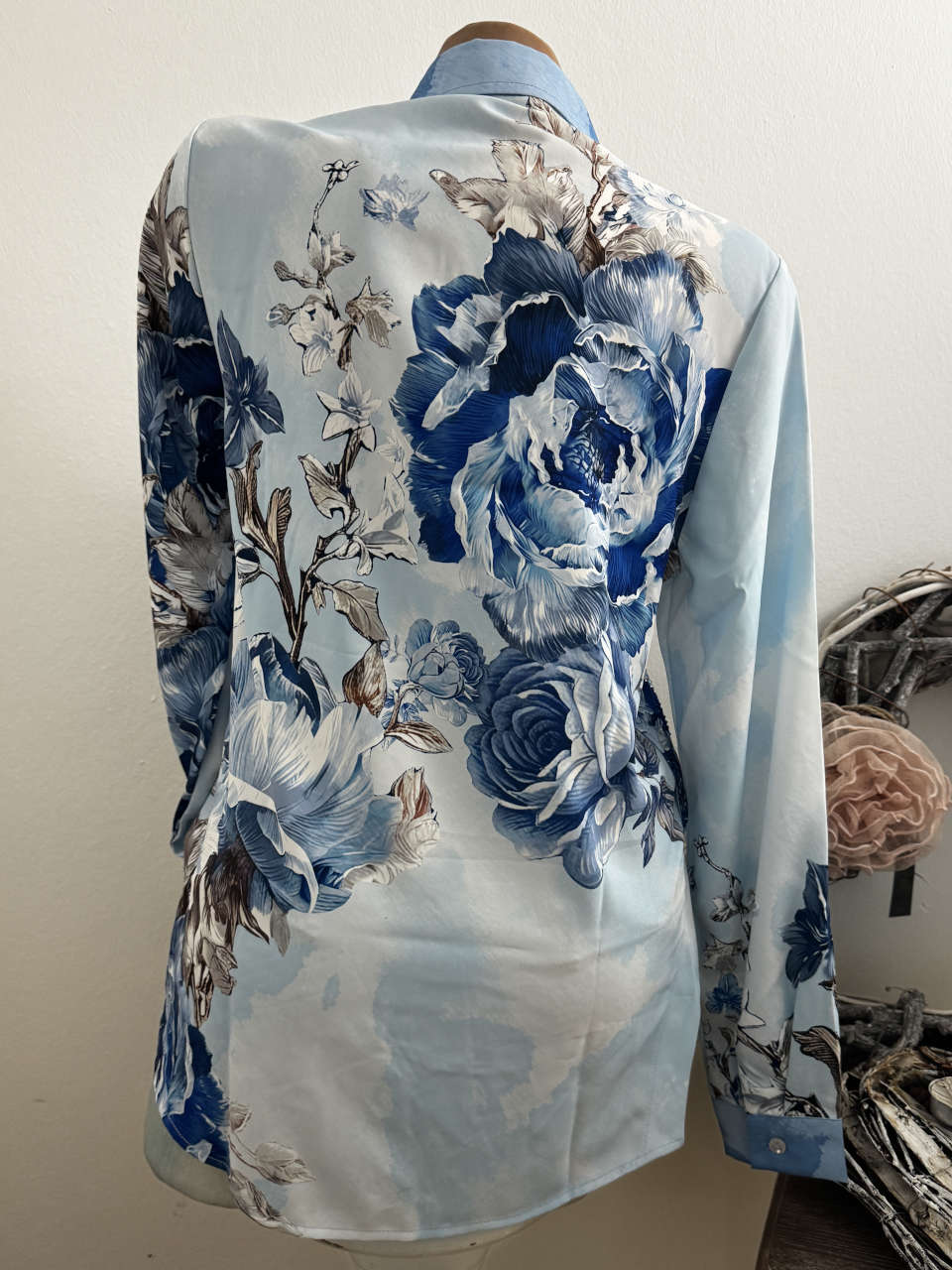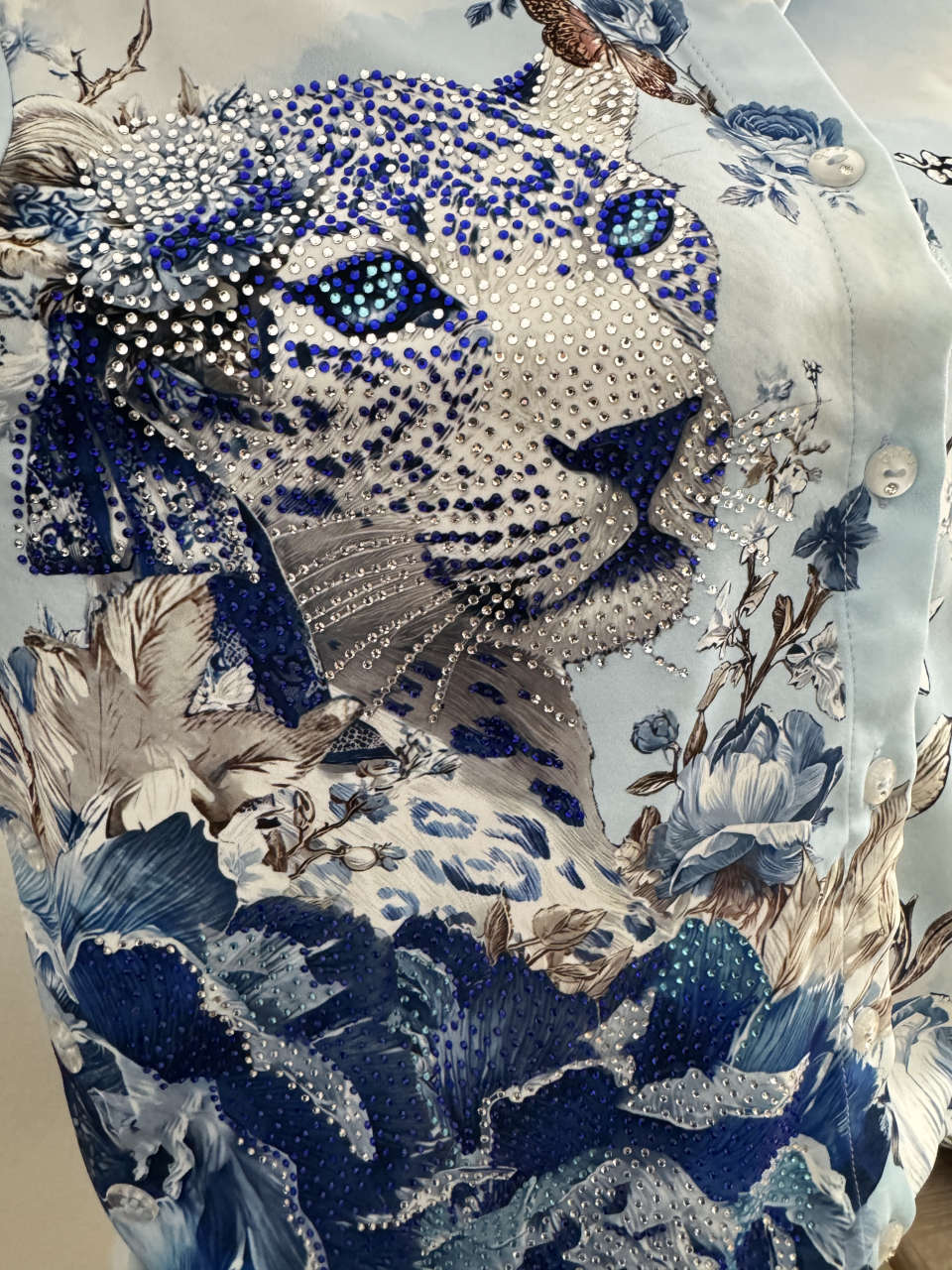 Unser Kommentar zu "MISSY L 40 Bluse Tunika Hemdbluse blau Tiger Blumen Floral Neu Glitzer Steinchen"