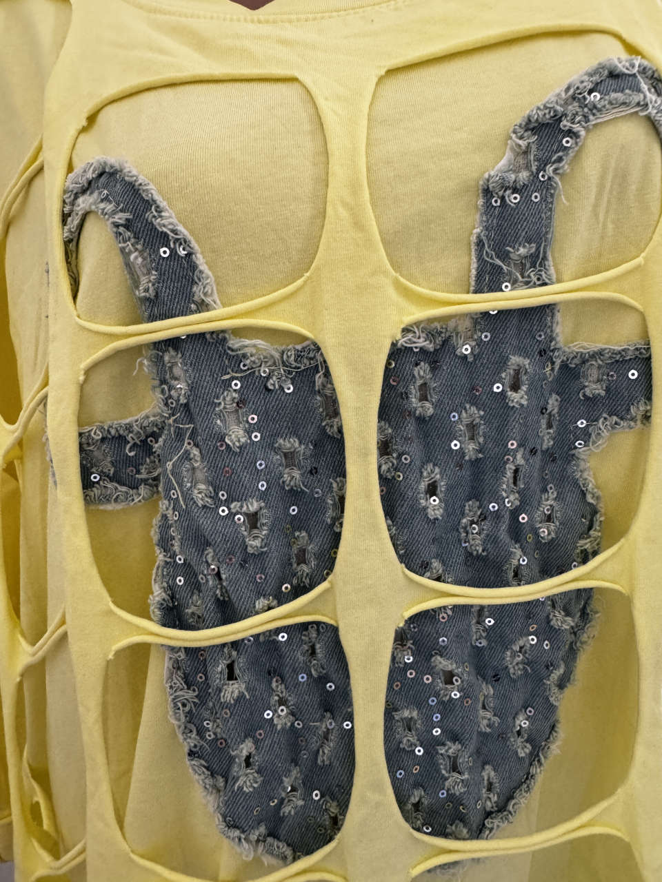 Unser Kommentar zu "Baumwolle Longsleeve Tunika 40-44 gelb cut outs Glitzer Mouse Comic Made in Italy"