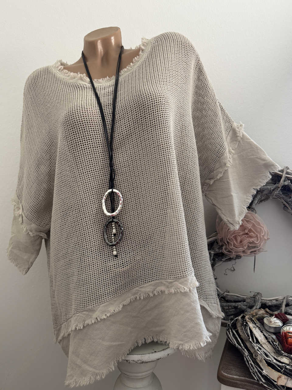 Tunika Shirt Säume gewollt franselig beige Made in Italy 40-44 NEU