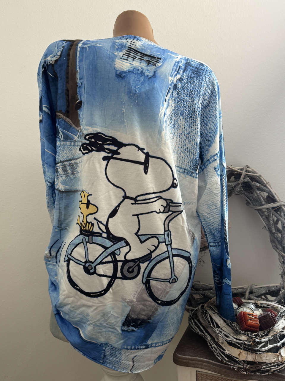 Longsleeve Tunika Glitzer Steinchen 40-44 Comic blau bunt Made in Italy