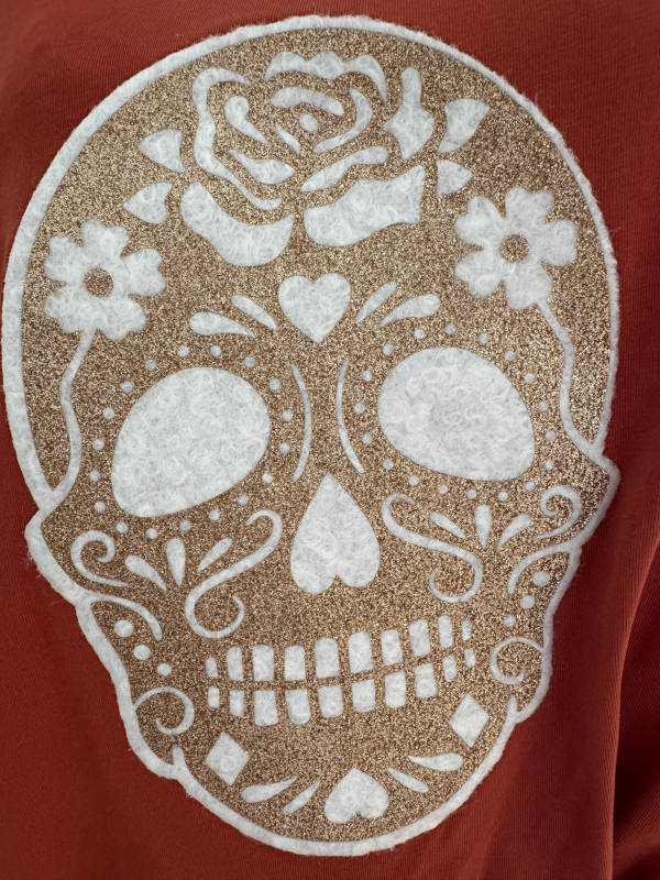 Produktinformationen "Vokuhila Longsleeve Tunika 42-44 Print Skull Made in Italy rostbraun NEU"