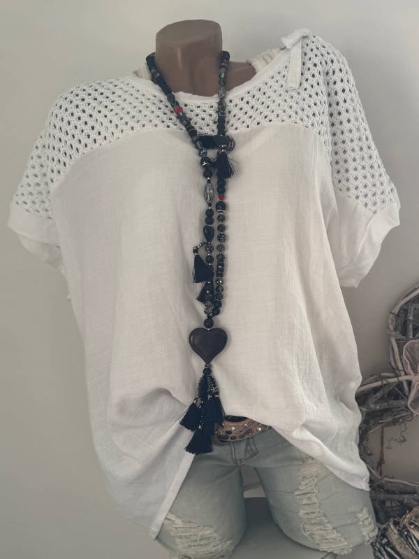 Unser Kommentar zu "Tunika Bluse Netzeinsatz weiss 38-42 Made in Italy 25% Leinen Neu"