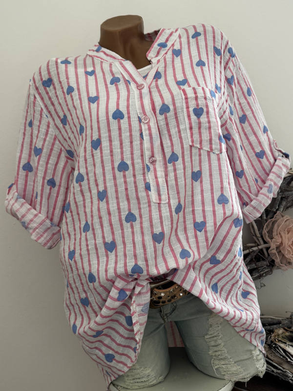 Tunika Bluse NEU Fischerhemd gestreift Herzchen weiss rosa blau 38-42 Italy
