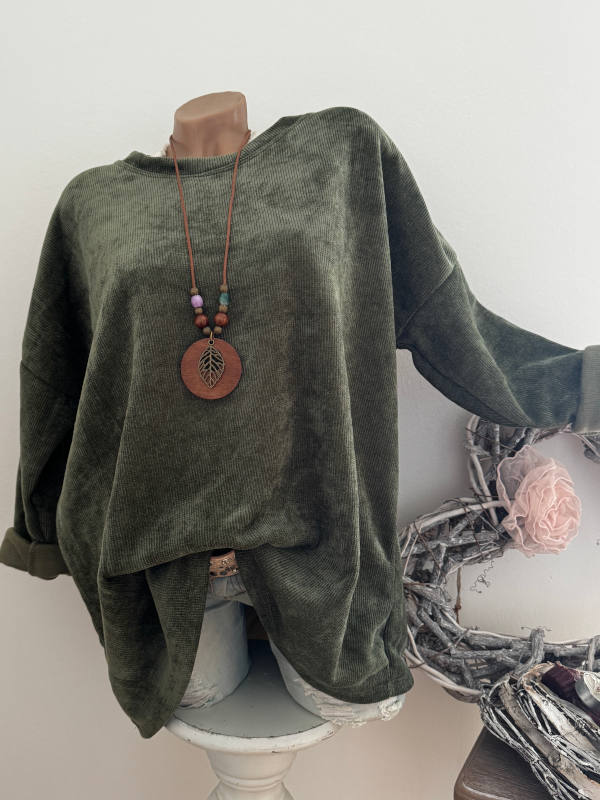 2tlg Cord Tunika oliv grün mit Kette Made in Italy 40-44 NEU Pullover