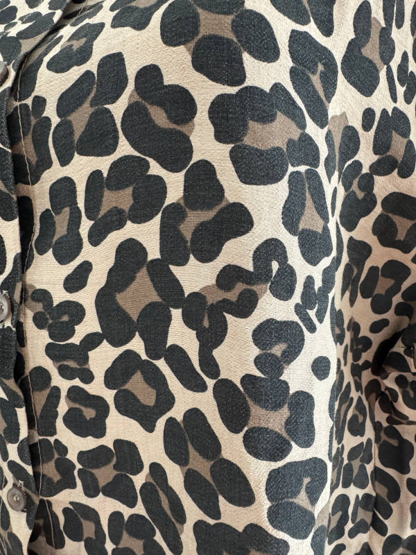 Neu mit Etikett aus Italien Long Tunika Hemdbluse Onesize = passt hier bei Grössen 38-44 (Je kleiner die eigene Größe um so lockerer sitzt die Bluse) Brustweite/Achselweite:65cm Gesamtlänge:vorne 68cm hinten 82cm 3/4 Turn up Ärmel Farbe:beige schwarz Leo 100% Viskose Jeans etc nur Deko