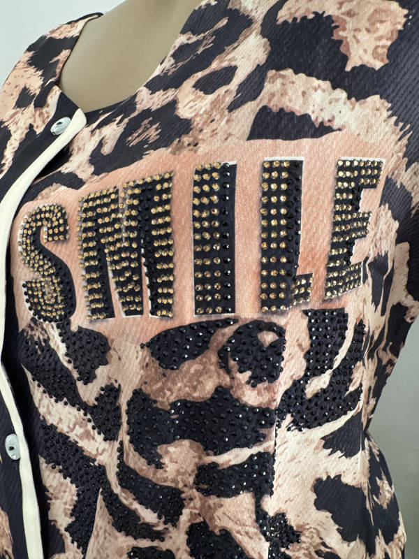 Unser Kommentar zu "MISSY XL 42 Bluse Hemdbluse Tunika Animalprint schwarz Smile Leopard Glitzer Nieten NEU"