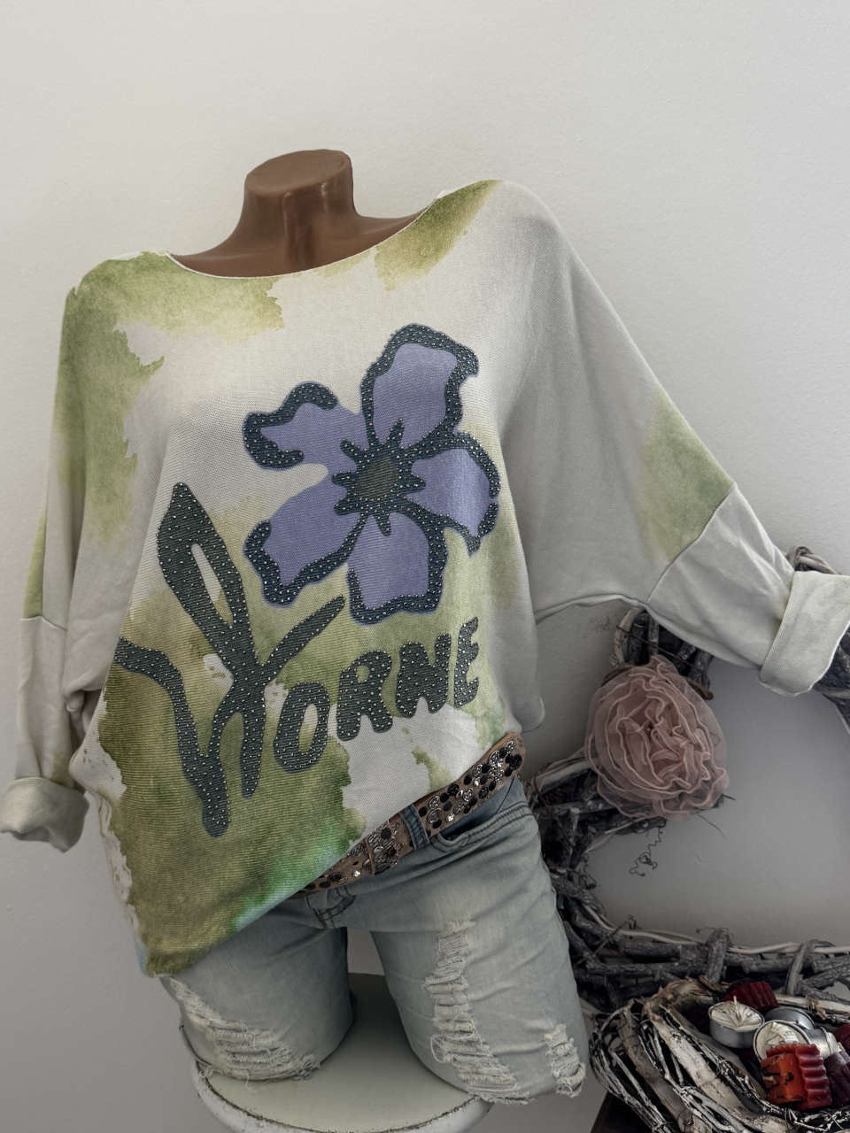nbsp; Unser Kommentar zu "Feinstrick Longsleeve Flausch 38 40 42 NEU Blume weiss lila gelb grün Made in Italy"