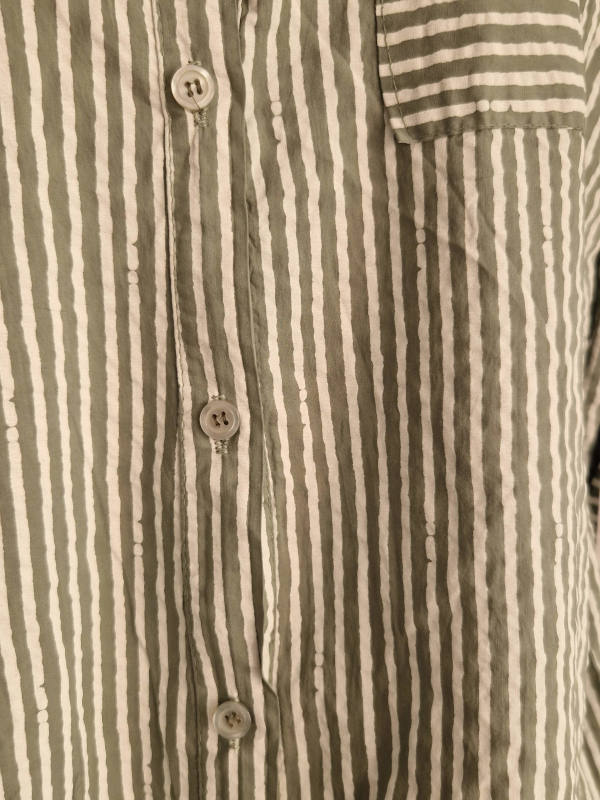 Unser Kommentar zu "Long Hemdbluse Bluse Hemdblusenkleid Made in Italy oliv/weiss 40-44 Baumwolle"
