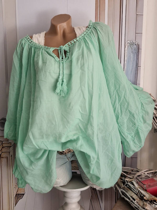 Produktinformationen "Tunika Bluse mint weite Ärmel Bindebändchen 38-48 Made in Italy Neu"