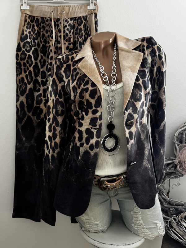 Unser Kommentar zu "Blazer MISSY S 36 Kurzblazer Leo taupe schwarz Glitzer Nieten Neu"