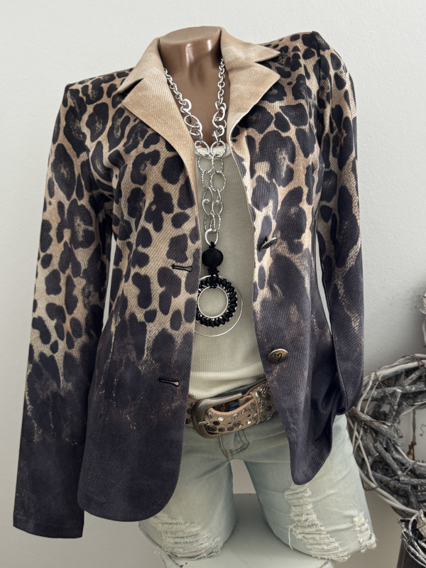 Blazer MISSY S 36 Kurzblazer Leo taupe schwarz Glitzer Nieten Neu