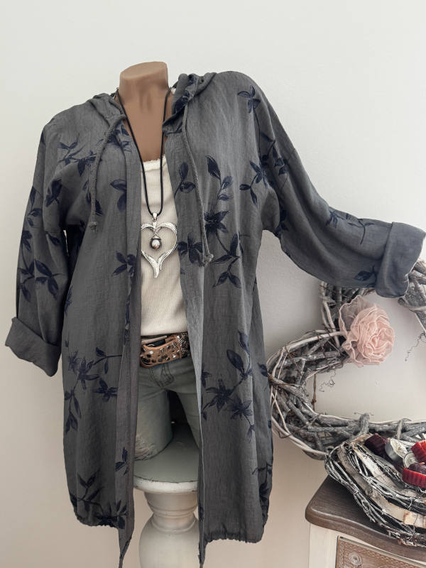 Unser Kommentar zu "leichter Cardigan mit Kapuze Made in Italy grau gemustert 40-44 NEU Tunnelzug Hoodie Jacke"