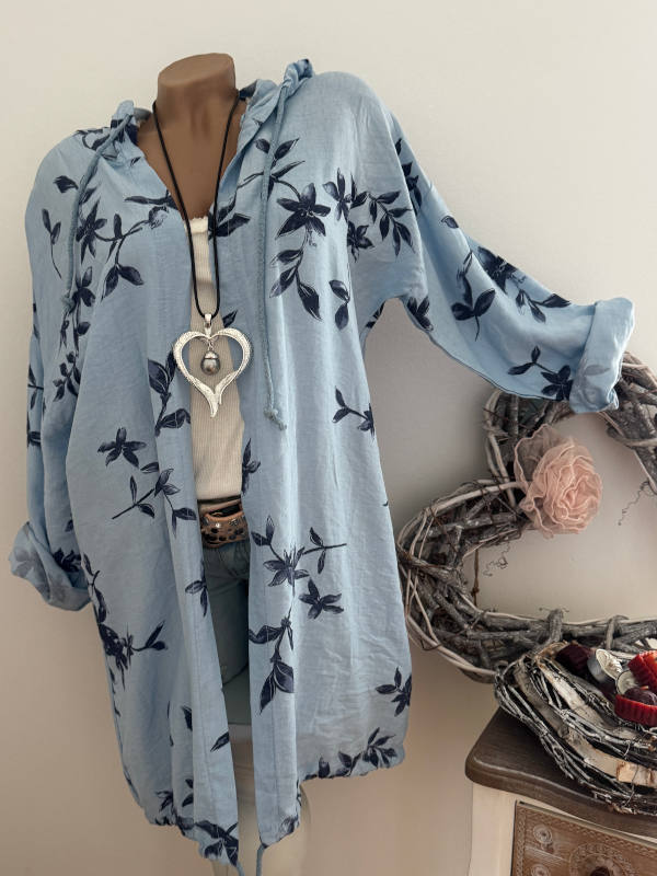 Produktinformationen "leichter Cardigan mit Kapuze Made in Italy blau gemustert 40-44 NEU Tunnelzug Hoodie Jacke"