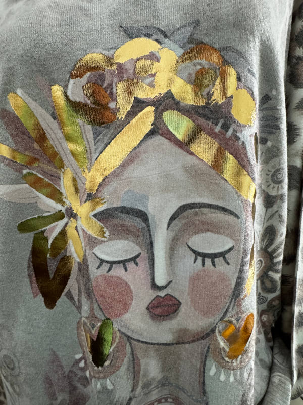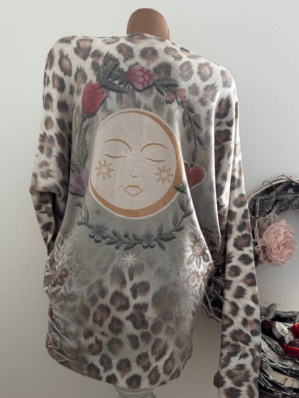 Unser Kommentar zu "V-Neck Pullover Pulli Seitenschlitze 40-44 Made in Italy Metallicprint Leo beige gemustert"