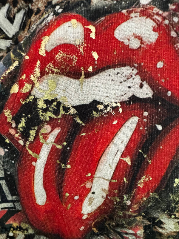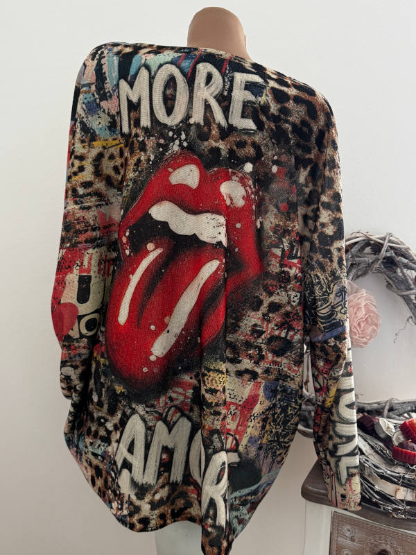 Unser Kommentar zu "Longsleeve Tunika 40-46 ausgestreckte Zunge Graffiti bunt gemustert V-Neck Lurexsaum Made in Italy N"