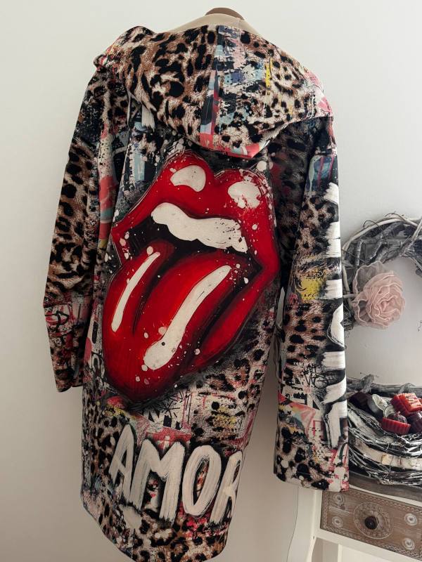 cooler ausgefallener Kapuzen Mantel mit Graffiti Print