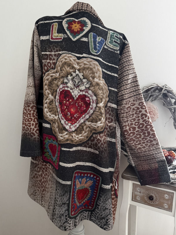 Unser Kommentar zu "Mantel 40-44 Made in Italy ausgefallener Strick/Graffiti Print Neue Kollektion"