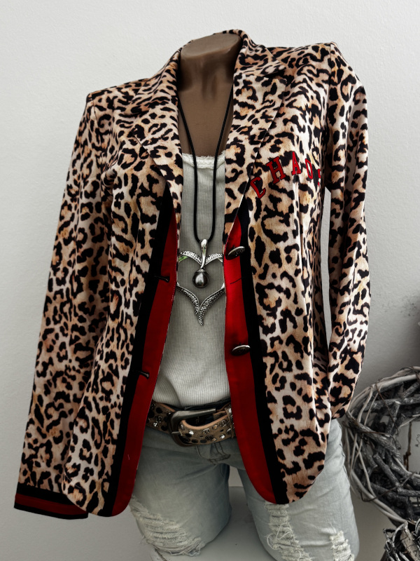 Unser Kommentar zu "Blazer MISSY L 40 Jackett Neue Kollektion Leo mit rot und schwarz Glitzernieten"