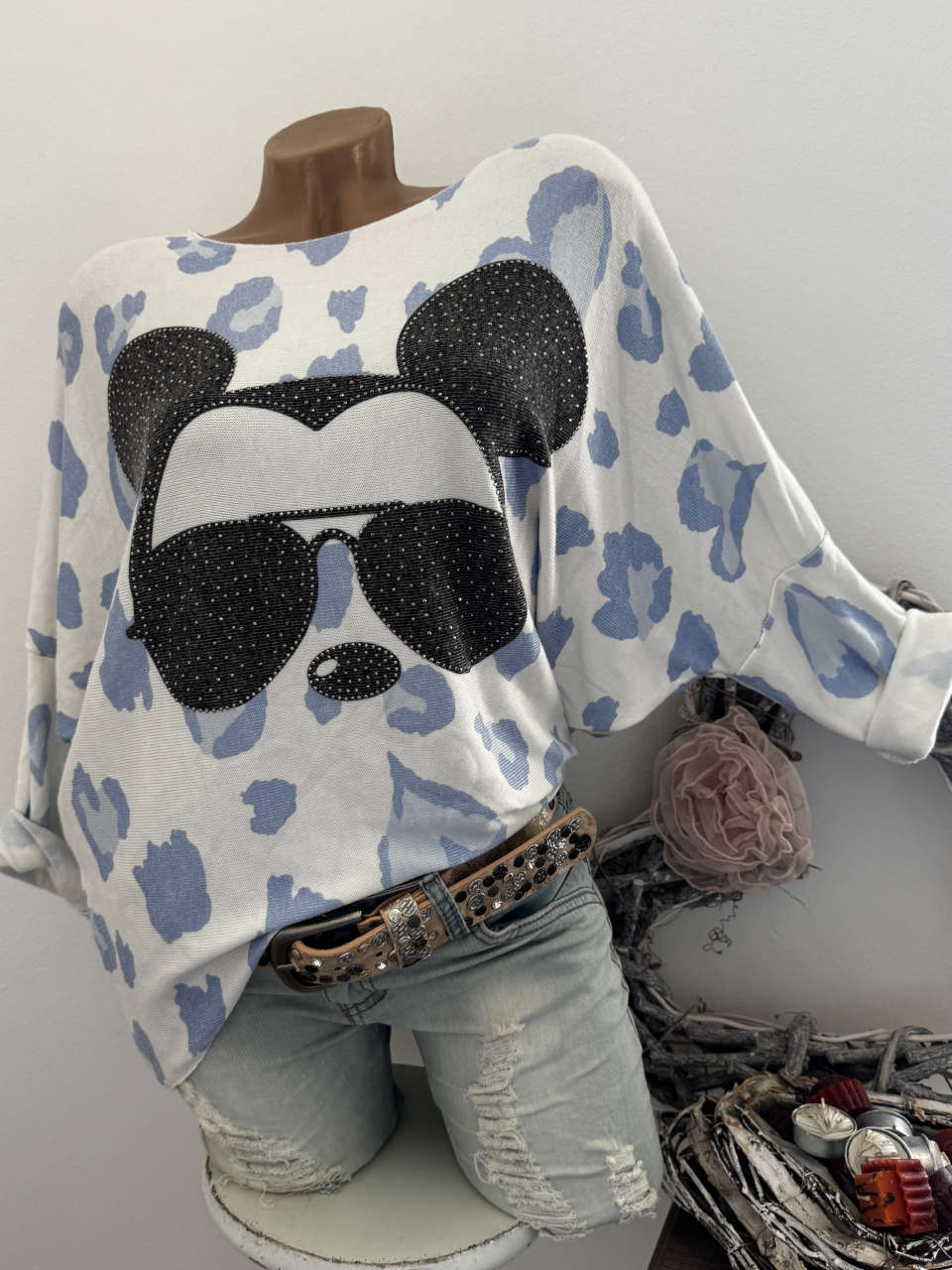 nbsp; Unser Kommentar zu "Feinstrick Longsleeve Flausch 38 40 42 NEU Mouse Brille weiss blau Made in Italy"
