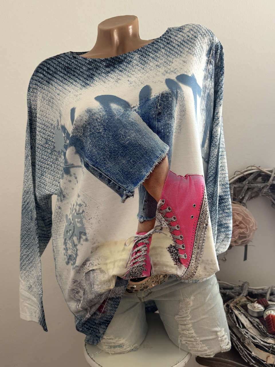 Longsleeve Tunika Glitzer Steinchen 40-44 Sneakers Made in Italy
