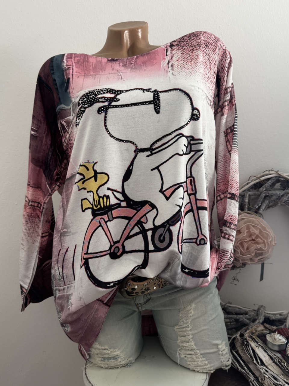 Longsleeve Tunika Glitzer Steinchen 40-44 Comic rosa bunt Made in Italy