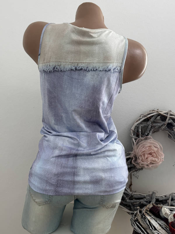 Unser Kommentar zu "MISSY XL 42 Trägertop Top Longtop Patchwork Destroyed Peacezeichen Print Glitzer Nieten Neu"