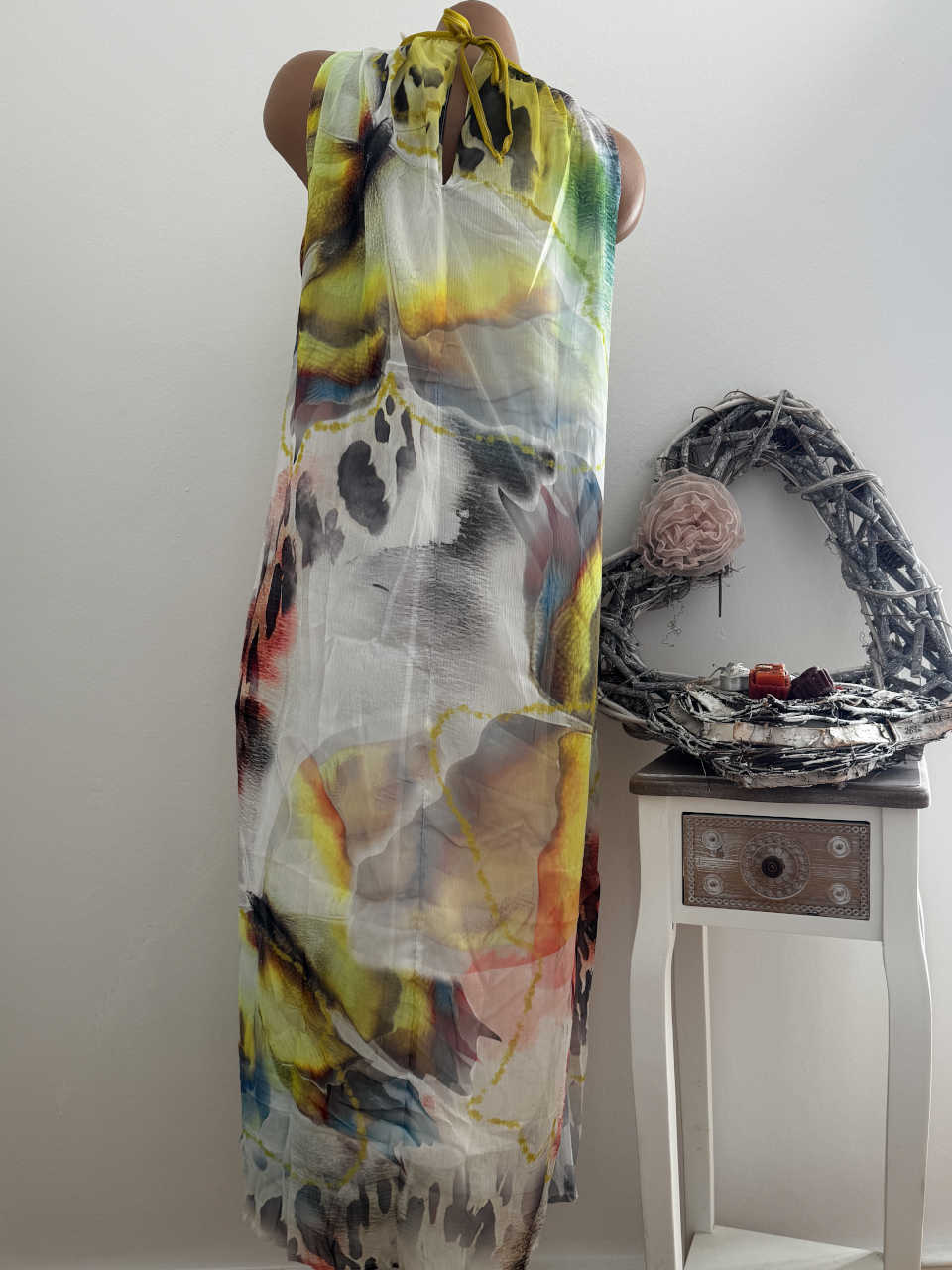 Unser Kommentar zu "Kleid Maxikleid M 38 MISSY Ärmelloses gelb floral bunt gemustert hinten zum binden 2lagig unterfütte"
