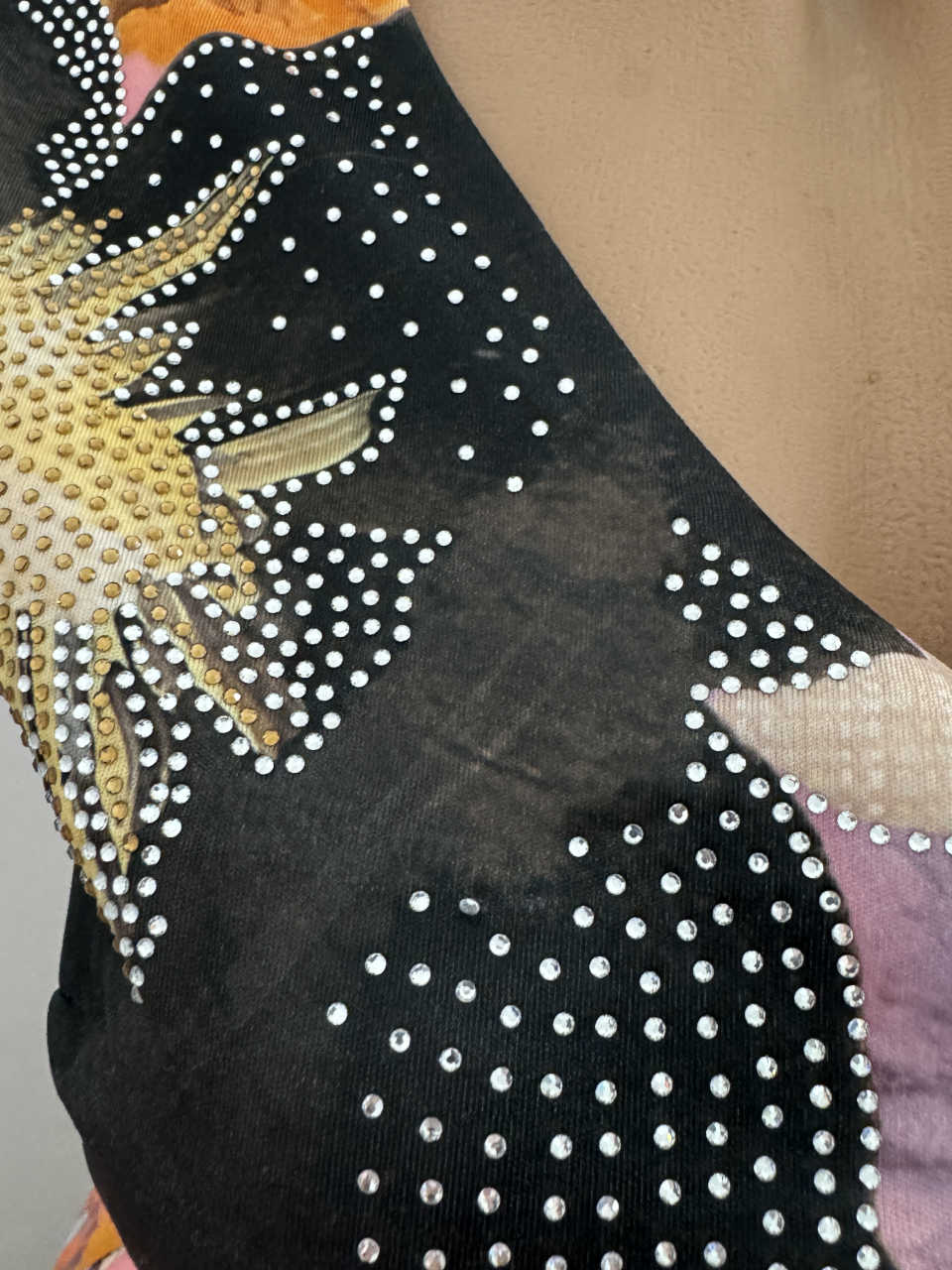 hinten mit Reissverschluss Farbe:bunt Vorderseite mit Glitzernieten 89% Polyester 11% Elasthan