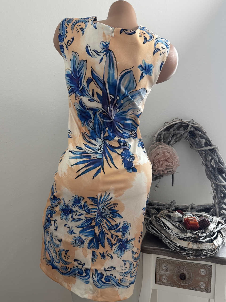 Produktinformationen "MISSY Kleid M 38 Stretchkleid Trägerkleid Neu beige weiss blau Blumen Glitzer Steinchen"