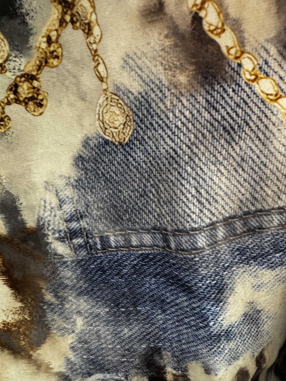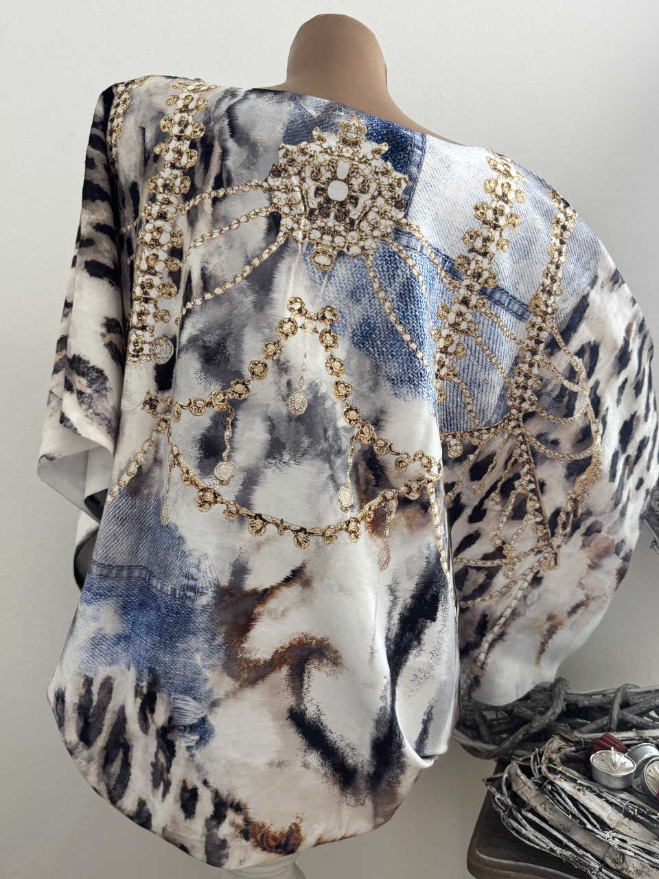 Produktinformationen "MISSY Feinstrick Tunika Fledermausarm 38-44 jeans bunt gemustert Neu Glitzer Nieten"