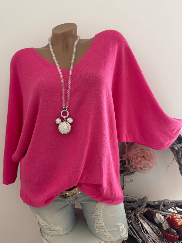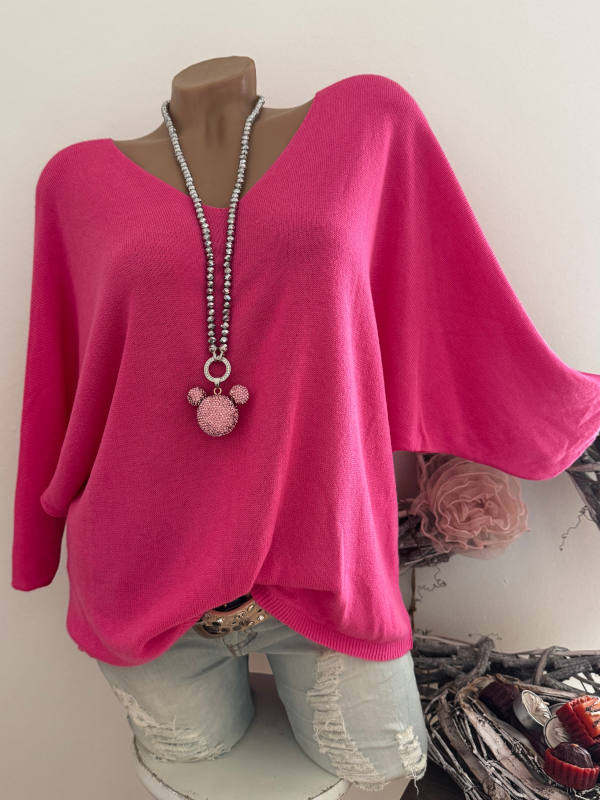 Unser Kommentar zu "Tunika Glattstrick Pullover pink Oversized Italy 38-42 Fledermausarm 1/2 Arm"