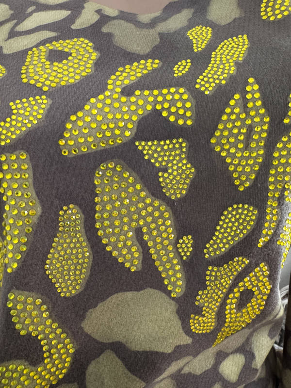 Unser Kommentar zu "MISSY Pulli Pullover M/L 38 40 Neu Glitzer Nieten Leo oliv grau schwarz gemustert"