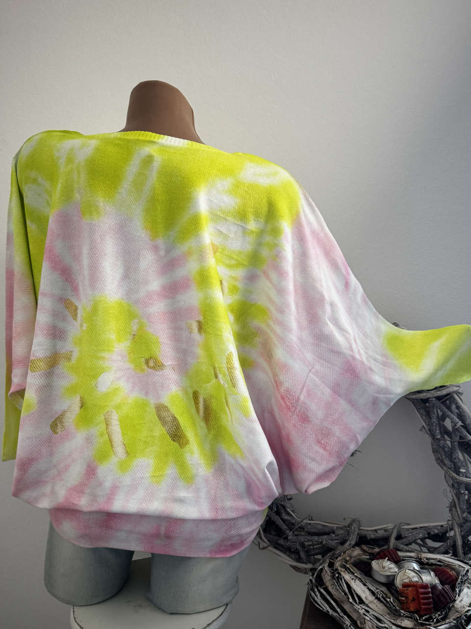 Produktinformationen "MISSY Feinstrick Fledermauspulli Pullover limone grün rosa weiss aquarell Glitzernieten Onesize 38-4"