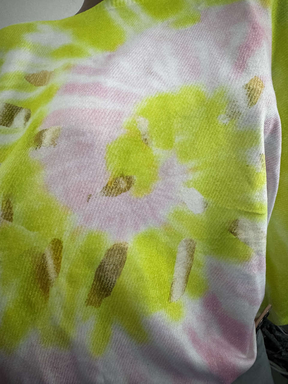 Unser Kommentar zu "MISSY Feinstrick Fledermauspulli Pullover limone grün rosa weiss aquarell Glitzernieten Onesize 38-4"