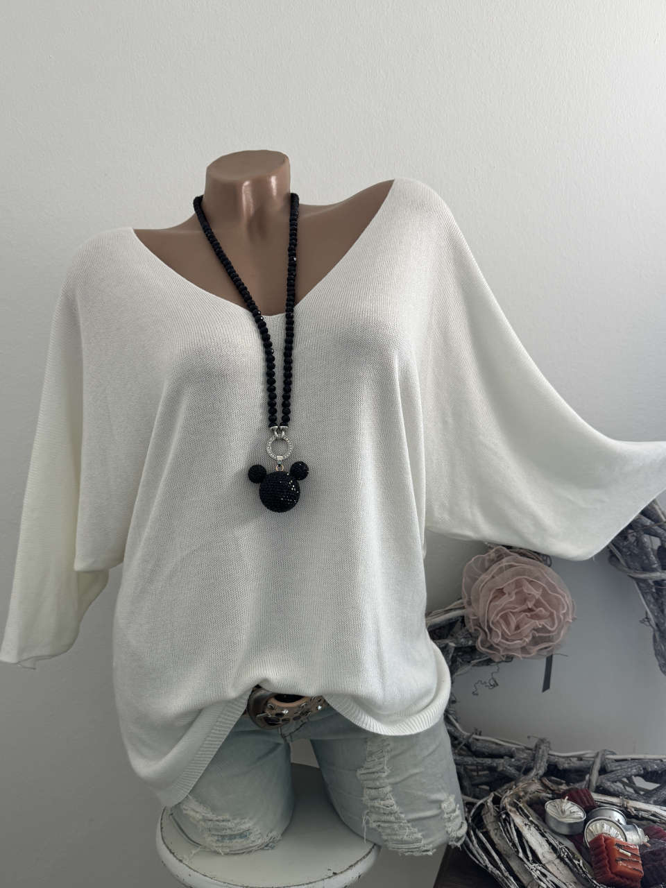 Unser Kommentar zu "weiss Tunika Glattstrick Pullover Oversized Italy 38-42 Fledermausarm 1/2 Arm"