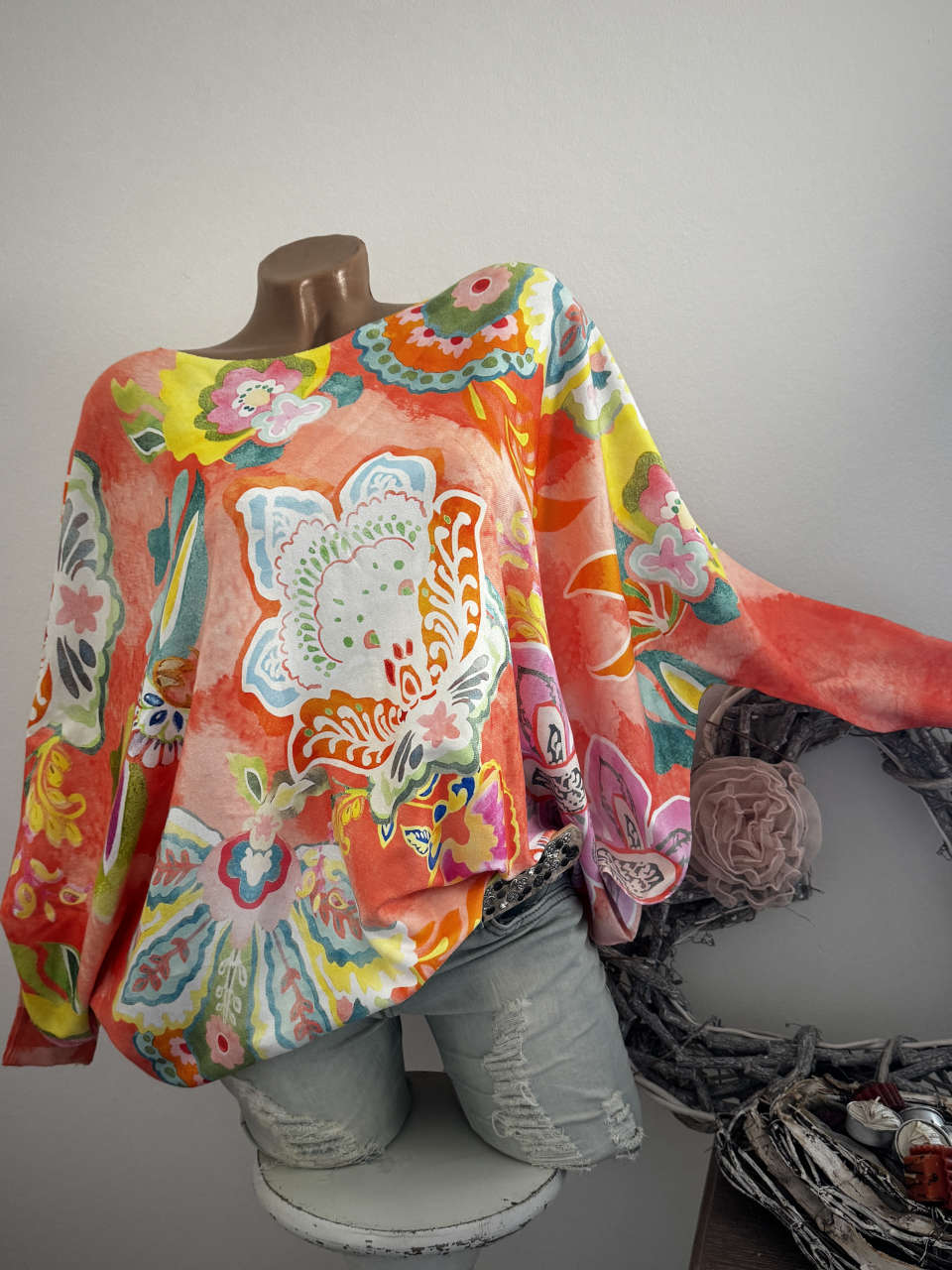 MISSY Feinstrick Fledermauspulli Pullover orange bunt Glitzernieten Onesize 38-44