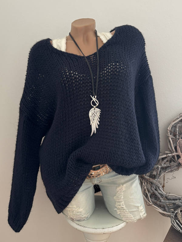 dunkelblau Pullover Made in Italy Grobstrickpulli 38-44 Pulli Neu Grobstrickpulli