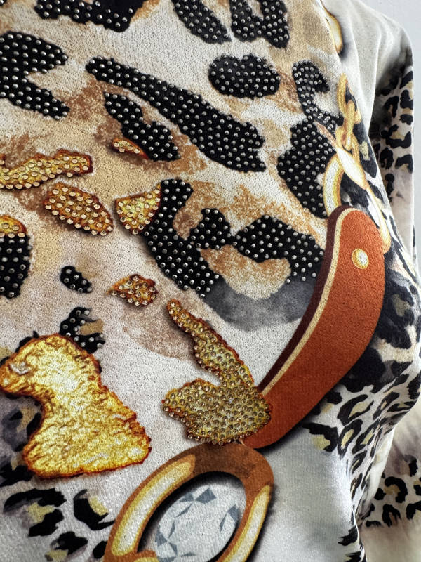 Unser Kommentar zu "MISSY Pulli Pullover L/XL 40 42 weiss Ketten Leo Print Neu Glitzer Nieten"