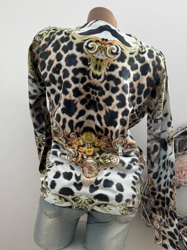 Unser Kommentar zu "MISSY Pulli Pullover L/XL 40 42 Neu Glitzer Nieten Leo Ornamente schwarz grün gemustert"
